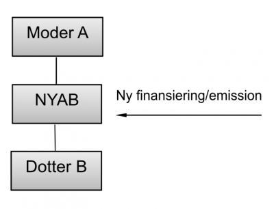 [1] I de scenarier som presenteras bildar Moder A NYAB för att därefter omedelbart använda NYAB som medel för att åstadkomma en omstrukturering/refinansiering. Notera att NYAB lika gärna hade kunnat etableras i koncernen simultant med transaktionen.